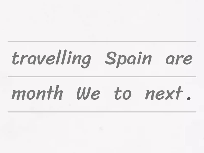 We are travelling to Spain next month., Dad is buying a new car on Friday., Sally is giving a party on Saturday., I am watching a football match tonight., We are visiting grandpa on Sunday., I am not going to school tomorrow., We aren't going out tonight., Is he playing rugby on Sunday morning?, Is she playing hockey this weekend?, Are you going out this evening?,