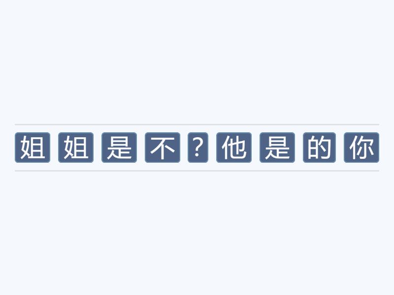 你 是 不 是 他 的 姐 姐 ?, 我 爸爸 姓 张 , 你 呢 ?, 你 们 都 从 哪 里 来 ?, 哥 哥 的 老 师 从 中 国 来 。, 欢 迎 你 来 我 们 家 玩 !, 你 去 打 篮 球 ,热 尼 亚 呢 ?, 你 妈 妈 是 哪 国 人 ?, 他 们 不 是 中 国 人 。, 我 们 的 校 长 姓 王 。, 欢 迎 大 家 来 我 们 的 学 校 !, 他 的 教 练 是 不 是 北 京 人 ?, 大 学 生 从 北 京 来 。,