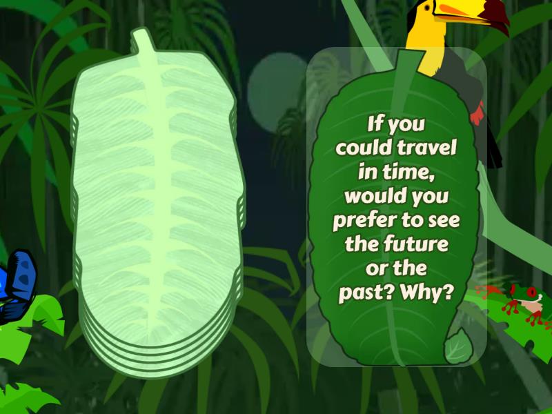 : What would you do if you found a wallet with a lot of money in it?, If you could stay one age forever, what age would it be? Why?, If you could travel in time, would you prefer to see the future or the past? Why?, If you won the lottery, what would you do? Mention at least 2 things, Where would you live if money weren’t a problem?, What would you do if you were invisible for a day?,