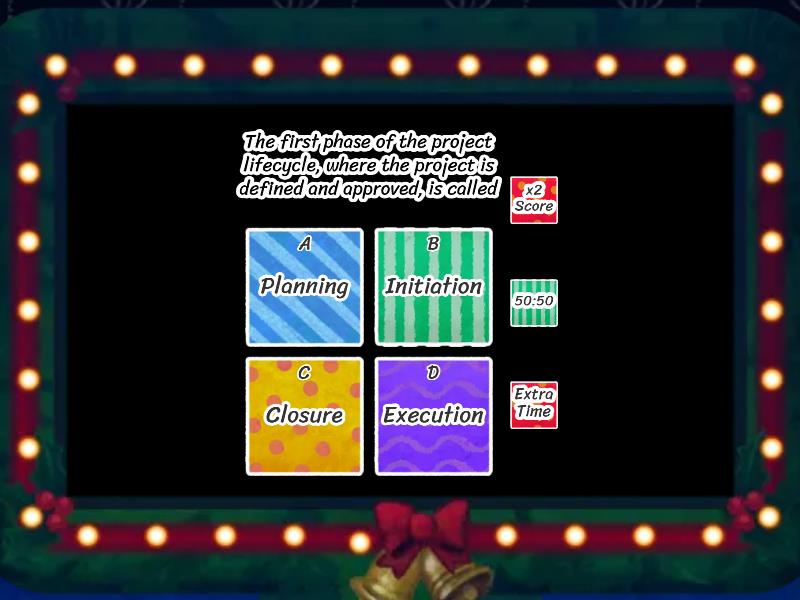 1) The final phase of the project lifecycle, where the project is formally closed and evaluated, is called a) Closure b) Planning c) Execution d) Initiation 2) The phase in the project lifecycle where the project deliverables are created and completed is known as a) Closure b) Execution c) Initiation d) Planning 3) A flexible project management methodology that focuses on iterative progress and collaboration is called a) Lean b) PRINCE2 c) Agile d) Waterfall 4) A methodology that breaks down projects into small, manageable phases or stages is known as a) PRINCE2 b) Agile c) Scrum d) Waterfall 5) The first phase of the project lifecycle, where the project is defined and approved, is called a) Planning b) Initiation c) Execution d) Closure 6) The process of identifying, analysing, and responding to risks is called a) Risk Management b) Issue Management c) Scope Management d) Quality Management