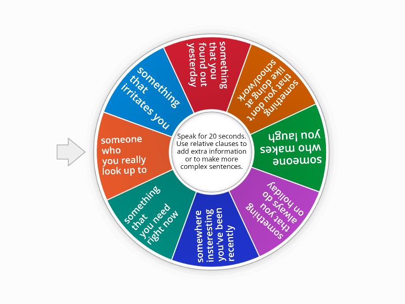 1) something that irritates you 2) something that you found out yesterday 3) something that you don't like doing at school/work 4) someone who makes you laugh 5) something that you always do on holiday 6) somewhere insteresting you've been recently 7) something that you need right now 8) someone who you really look up to