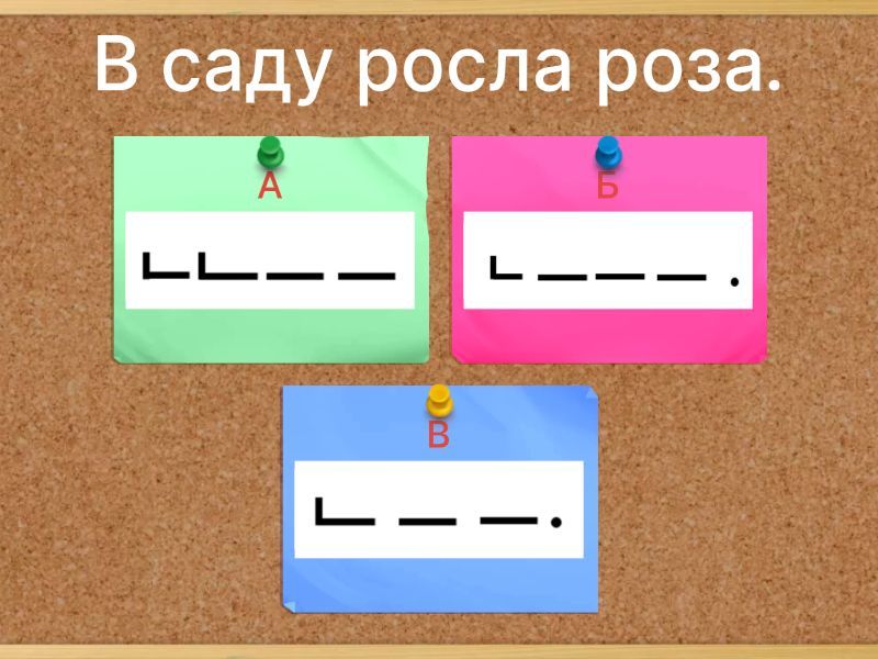 1) Наступила осень. a) b) c) 2) Дети нарисовали картину. a) b) c) 3) Катя мыла руки. a) b) c) 4) У Вовы шарик.  a) b) c) 5) У Серёже новый самокат. a) b) c) 6) В саду росла роза. a) b) c) 7) На улице идёт сильный дождь.  a) b) c) 8) Птица летит над зелёным лесом.  a) b) c) 9) Пушистый заяц прячется за кустом.  a) b) c) 10) Собака бежит по дороге. a) b) c)