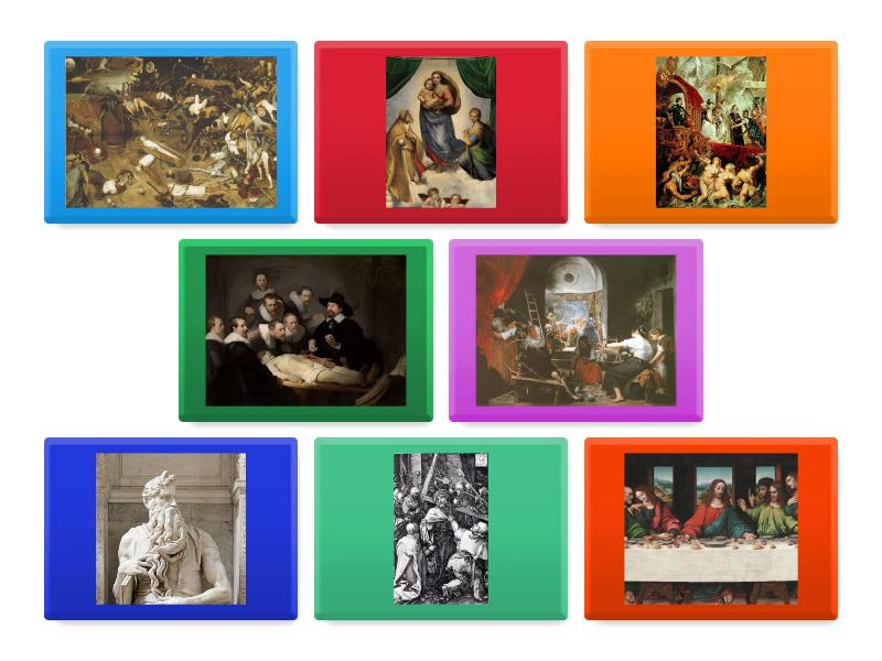 Рембрандт ван Рейн, Пітер Пауль Рубенс, Дієго Веласкес, Леонардо да Вінчі, Мікеланджело Буонарроті, Рафаель Санті, Пітер Брейгель Старший, Альбрехт Дюрер,
