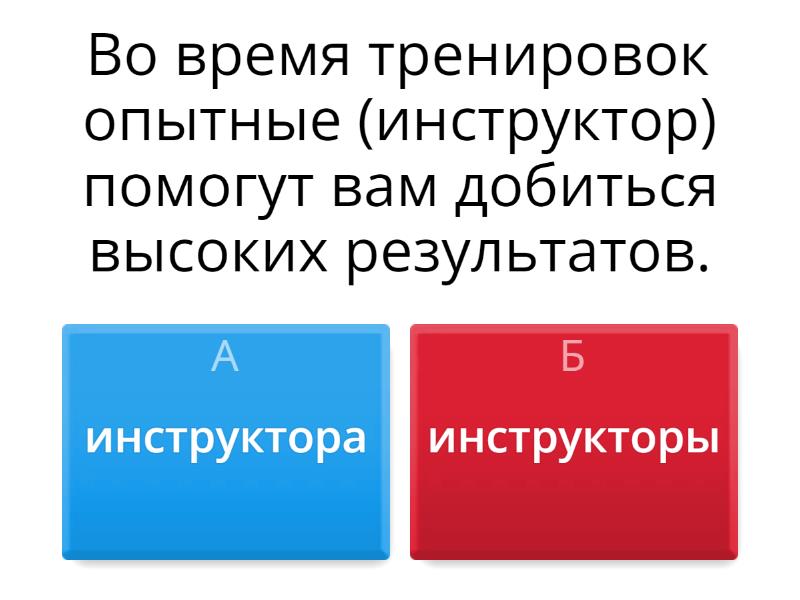 1) Во время тренировок опытные (инструктор) помогут вам добиться высоких результатов. a) инструктора b) инструкторы 2) Организатор обратился с речью к (четыреста) участникам форума. a) четырёхстам b) четырёмстам 3) Поля, засеянные пшеницей, занимали десятки (гектары). a) гектаров b) гектар 4) Перед тем как отправиться в лес, обработайте одежду (аэрозоль) для защиты от насекомых. a) аэрозолью b) аэрозолем 5) Выйдя на середину сцены, конферансье (объявить) о начале концерта. a) объявил b) объявило 6) Цветы (засохнуть), но остались по-прежнему прекрасны. a) засохнули b) засохли 7) ониторинг состояния морских (побережья) страны осуществляется под надзором экологических организаций. a) побережий b) побережьев 8) Крупный город располагался в (полтораста) километрах от нашей деревни. a) полторастах b) полутораста c) полуторастах 9) Исследование опирается на содержание нескольких (сотня) архивных документов. a) сотен b) сотней 10) ывает, что за лёгким движением лицевых (мускулы) скрывается множество различных эмоций. a) мускул b) мускулов 11) В пункте проката висело объявление «Осторожно (ездить) на самокате по улицам города». a) ездийте b) ездите c) поехжайте 12) Собирайте крапиву в перчатках: она очень больно (жечься). a) жгётся b) жжётся 13) Московский Кремль имеет двадцать (башни). a) башен b) башней 14) В магазии мы пришли с (тысяча) рублей. a) тысячью b) тысячей 15) Помещик, вскачив в сани, приказал ямщику: "Гришка, (ехать) прямо!" a) ехай b) езди c) поезжай 16) Купи рулон бумажных (полотенце). a) полотенец b) полотенцев 17) Разность между (семьдесят) и двадцатью семью равна сорока трём. a) семидесятью b) семьюдесятью