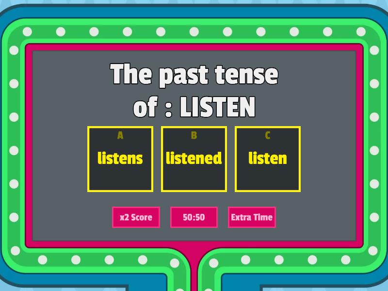 1) The past tense of : LISTEN a) listens b) listened c) listen 2) The past tense of : WORK a) worked b) work c) works 3) The past tense of : CARRY a) carryied b) carried c) carries 4) The past tense of : WALK a) walking b) walked c) walkeed 5) The past tense of : DANCE a) danced b) danceed c) dancing 6) The past tense of : CHECK a) chekes b) checkeed c) checked 7) The past tense of : BAKE a) baked b) bakeed c) bakes