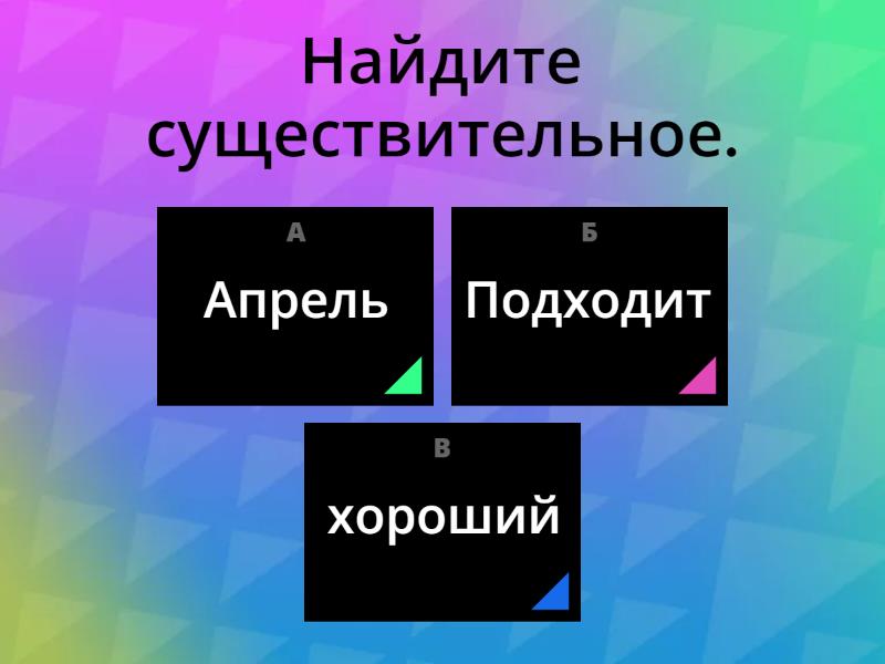 1) Найдите существительное. a) Апрель b) Подходит c) хороший 2) Найдите существительное. a) Еловые b) Заросли c) Лежат 3) Найдите существительное a) Тонкий b) Слой c) Покрыт 4) Найдите существительное. a) Лесные b) Поляны c) Увеличиваются 5) Найдите существительное. a) Припекает b) Жаркое c) Солнце 6) Найдите существительное. a) Поют b) Красивые c) Птицы 7) Найдите существительное. a) Зелёные b) Кусты c) Спрятаны 8) Найдите существительное. a) Сверкает b) Прозрачная c) Вода 9) Найдите существительное. a) Мерцает b) Бесчисленное c) Множество 10) Найдите существительное. a) Влажный b) Воздух c) Напоминает