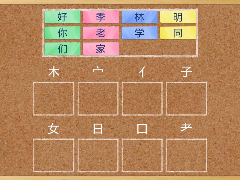 木: 林, 宀: 家, 亻: 们, 你, 子: 季, 学, 女: 好, 日: 明, 口: 同, 耂: 老,