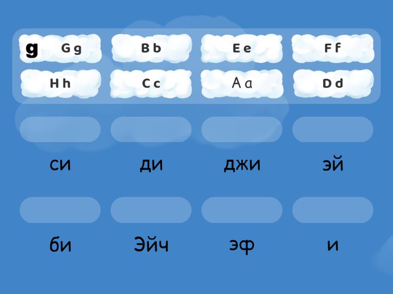А а - эй, B b - би, C c - си, D d - ди, E e - и, F f - эф, G g - джи, H h - Эйч,