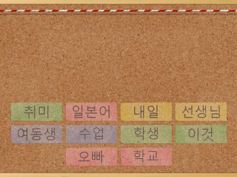 학생  -  , 학교 , 수업 , 선생님 , 이것, 오빠, 여동생, 내일, 취미, 일본어,