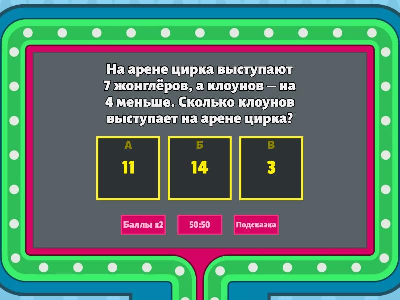 1) Маша засушила 3 кленовых листа, а дубовых – на 2 листа больше. Сколько дубовых листьев засушила Маша? a) 1 b) 5 c) 7 2) У Пети 4 флажка, а у Вани на 3 флажка больше. Сколько флажков у Вани? a) 1 b) 7 c) 10 3) Мама испекла 9 пирожков, а булочек – на 2 меньше. Сколько булочек испекла мама? a) 7 b) 11 c) 13 4) У Кати 6 матрёшек, а у Даши на 4 матрёшки больше. Сколько матрёшек у Даши? a) 2 b) 10 c) 12 5) В большой башне 8 окон, а в маленькой башне на 4 окна меньше. Сколько окон в маленькой башне? a) 4 b) 12 c) 16 6) Рыбак поймал 6 ершей, а окуней – на 4 меньше. Сколько окуней поймал рыбак? a) 10 b) 2 c) 12 7) Длина красного карандаша 10 см, а простой карандаш на 3 см длиннее. Какой длины простой карандаш? a) 7 b) 13 c) 16 8) Таня вырастила фиалку и кактус. Высота фиалки 7 см, а кактус на 3 см ниже фиалки. Какой высоты кактус? a) 13 b) 10 c) 4 9) В маленькой пирамидке 8 кружков, а в большой – на 2 кружка больше. Сколько кружков в большой пирамидке? a) 18 b) 10 c) 6 10) В поезде 9 вагонов, а в грузовом поезде на 3 вагона меньше. Сколько вагонов в Тульском поезде? a) 12 b) 6 c) 15 11) На арене цирка выступают 7 жонглёров, а клоунов – на 4 меньше. Сколько клоунов выступает на арене цирка? a) 11 b) 3 c) 14 12) Столяр починил 3 стола, а стульев – на 4 больше. Сколько стульев починил столяр? a) 11 b) 7 c) 1 13) На крыше сарая висят 4 сосульки, а на крыше дома – на 6 сосулек больше. Сколько сосулек висит на крыше дома? a) 2 b) 10 c) 14