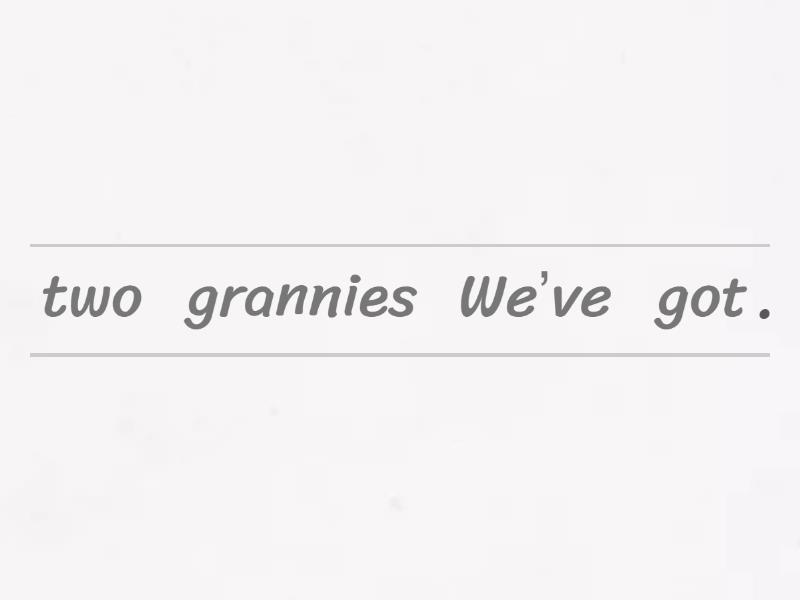 We’ve got two grannies., She’s got a purple notebook., You’ve got a nice bag., I haven’t got a brother., She hasn’t got a plan., My parents have got a big house., I’ve got an unusual school., He’s got a small book., They haven’t got a black cat., My city hasn’t got a modern circus., They've got a fantastic plan for the weekend., Our team has got an amazing trainer., I haven't got a ticket for the show.,