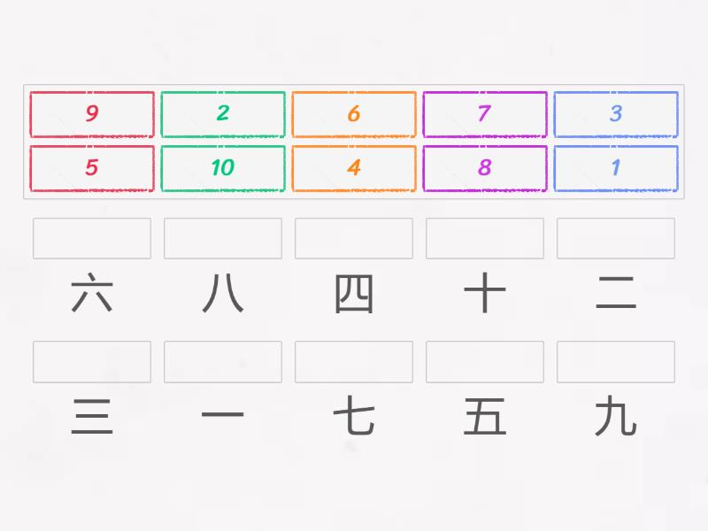 1 - 一, 2 - 二, 3 - 三, 4 - 四, 5 - 五, 6 - 六, 7 - 七, 8 - 八, 9 - 九, 10 - 十,