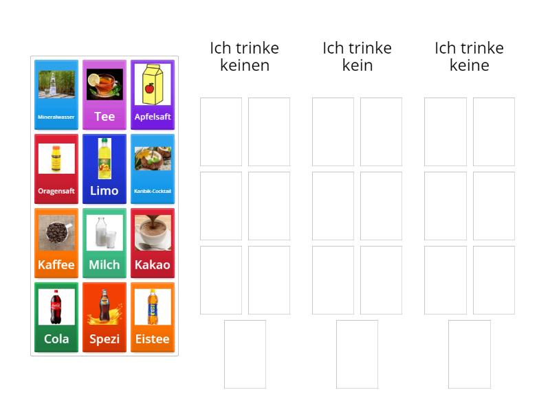 Ich trinke keinen: Oragensaft, Tee, Apfelsaft, Eistee, Kakao, Kaffee, Karibik-Cocktail, Ich trinke kein: Mineralwasser, Spezi, Ich trinke keine: Cola, Milch, Limo,
