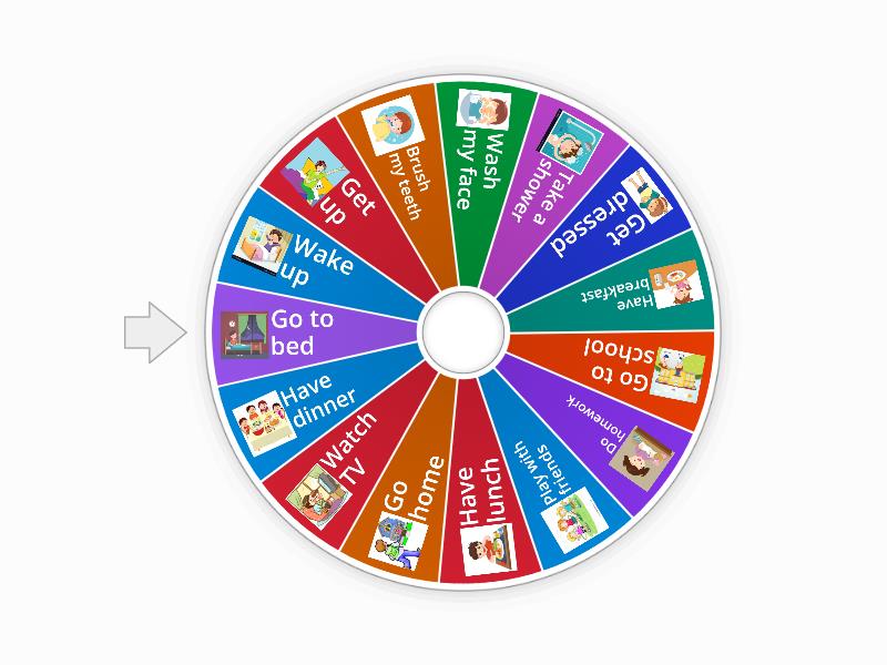 1) Wake up  2) Get up 3) Brush my teeth 4) Wash my face 5) Take a shower 6) Get dressed 7) Have breakfast 8) Go to school 9) Do homework 10) Play with friends 11) Have lunch 12) Go home 13) Watch TV 14) Have dinner 15) Go to bed