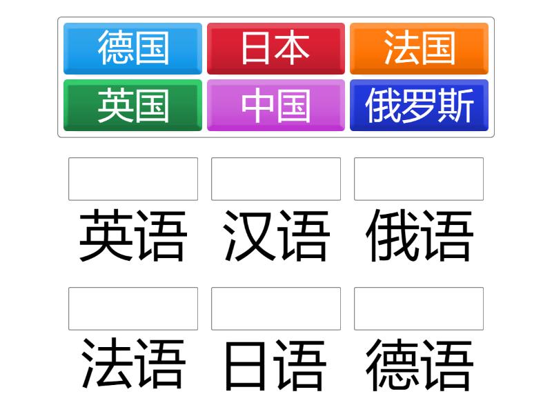 法国   - 法语  , 德国 - 德语 , 英国 - 英语 , 日本   - 日语 , 中国 - 汉语, 俄罗斯 - 俄语,