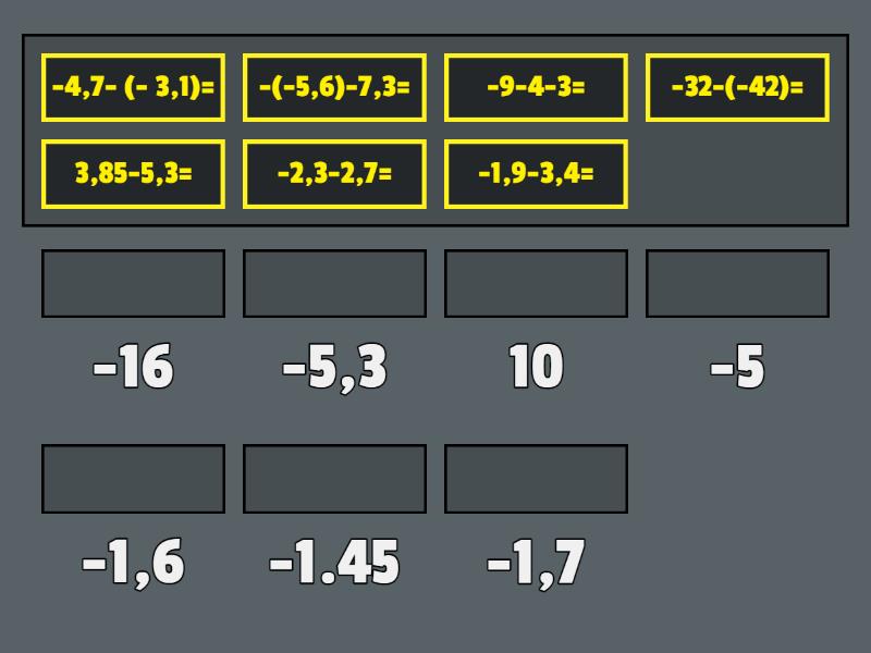 -4,7- (- 3,1)= - -1,6, -(-5,6)-7,3= - -1,7, -9-4-3= - -16, 3,85-5,3= - -1.45, -2,3-2,7= - -5, -32-(-42)= - 10, -1,9-3,4= - -5,3,