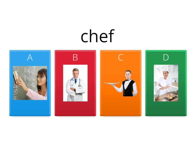 1) chef a) b) c) d) 2) nurse a) b) c) d) 3) hospital a) b) c) 4) restaurant a) b) c) 5) teacher a) b) c) d) 6) waiter a) b) c) d) 7) cook a) b) 8) work a) b) 9) Where do doctors work? a) in hospitals b) in restaurants c) in schools 10) Where do chefs work? a) in hospitals b) in restaurants c) in schools 11) Where do teachers work? a) in hospitals b) in restaurants c) in schools 12) Where do nurses work? a) in hospitals b) in restaurants c) in schools