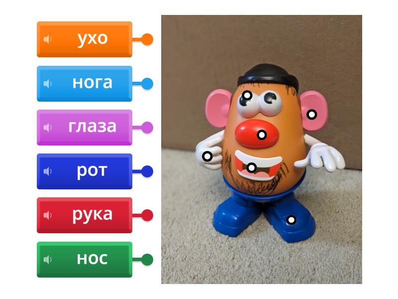 нога, рука, ухо, нос, глаза, рот.