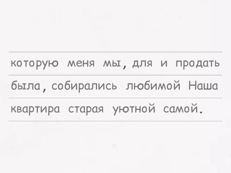 Наша старая квартира, которую мы собирались продать, была для меня самой уютной и любимой., Каждое утро я просыпалась с желанием идти в школу, а моя мама радовалась этому, как ребёнок., И снова за окном расшумелся ветер, но это не сможет помешать мне встретиться с друзьями.,