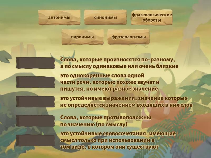 антонимы - Слова, которые противоположны по значению (по смыслу), синонимы - Слова, которые произносятся по-разному, а по смыслу одинаковые или очень близкие, фразеологические обороты - это устойчивые словосочетания, имеющие смысл только при использовании в том виде, в котором они существуют, паронимы - это однокоренные слова одной части речи, которые похоже звучат и пишутся, но имеют разное значение, фразеологизмы - это устойчивые выражения, значение которых не определяется значением входящих в них слов,