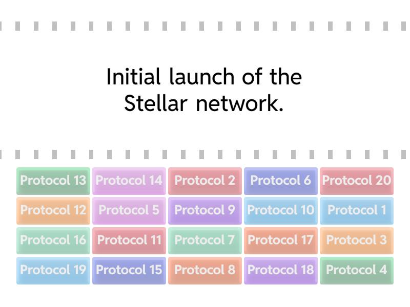 Protocol 1 - Initial launch of the Stellar network., Protocol 2 - Introduction of multi-signature accounts., Protocol 3 - Implementation of inflation mechanism., Protocol 4 - Introduction of path payments., Protocol 5 - Improvements to transaction processing., Protocol 6 - Enhanced security features., Protocol 7 - Introduction of data entries., Protocol 8 - Improvements to the consensus algorithm., Protocol 9 - Introduction of the Stellar Decentralized Exchange (DEX)., Protocol 10 - Enhanced asset issuance and management., Protocol 11 - Improvements to transaction fees., Protocol 12 - Introduction of the Stellar Anchors., Protocol 13 - Enhanced compliance features., Protocol 14 - Improvements to the Stellar Core., Protocol 15 - Introduction of the Stellar Ecosystem Proposal (SEP) process., Protocol 16 - Enhanced smart contract capabilities., Protocol 17 - Improvements to the Stellar SDKs., Protocol 18 - Introduction of the Stellar Community Fund., Protocol 19 - Enhanced scalability features., Protocol 20 - Improvements to the Stellar Horizon API.,