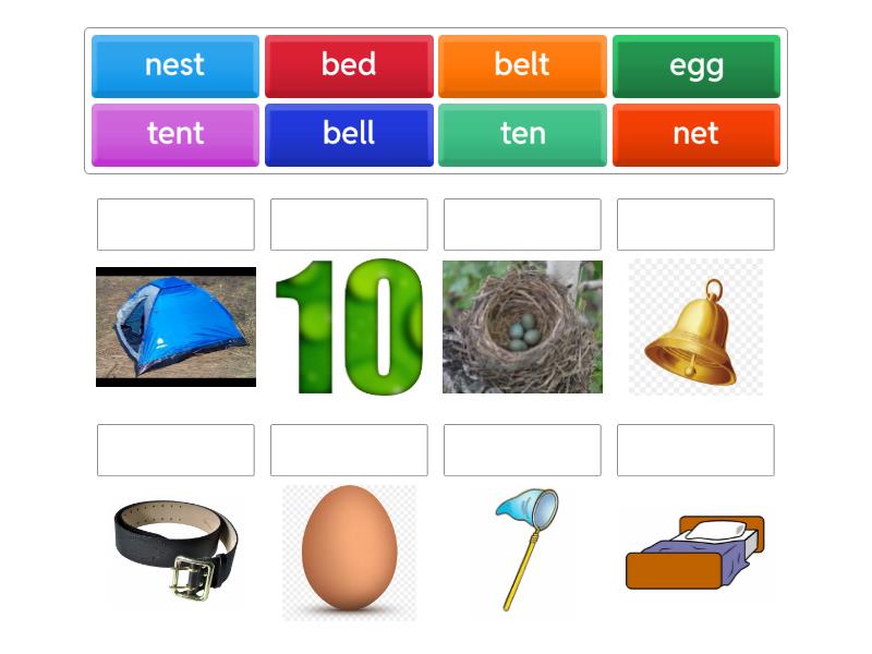 bed, tent, egg, belt, nest, ten, bell, net, desk , elf, pen,