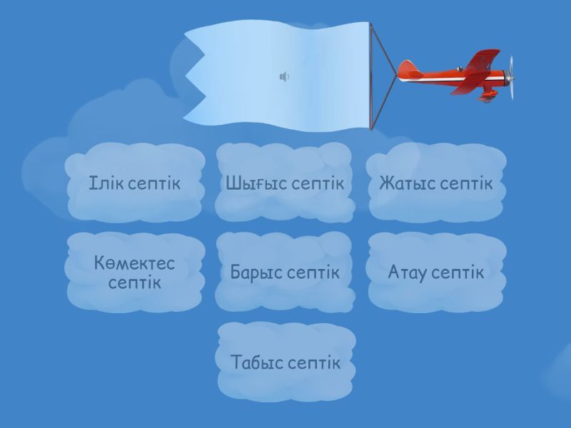 Атау септік, Ілік септік, Барыс септік, Табыс септік, Жатыс септік, Шығыс септік, Көмектес септік,