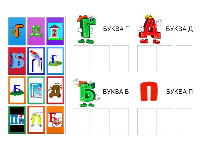 БУКВА Г: , , , БУКВА Д: , , , БУКВА Б: , , , БУКВА П: , , ,