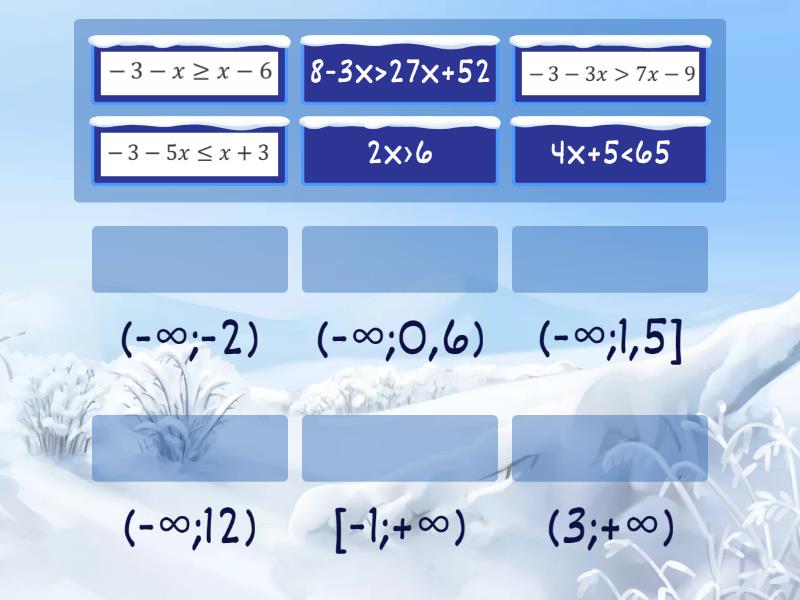 2х›6 - (3;+∞), 4х+5<65 - (-∞;12), 8-3х>27х+52 - (-∞;-2), (-∞;0,6), (-∞;1,5], [-1;+∞),