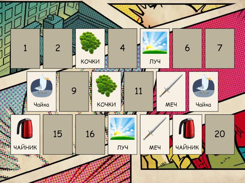 КОЧКИ, МЕЧ, ЧАЙНИК, ЛУЧ, Чайка, УДОЧКА, ПОНЧИК, ПЕЧКА, КЛЮЧ, Червяк,