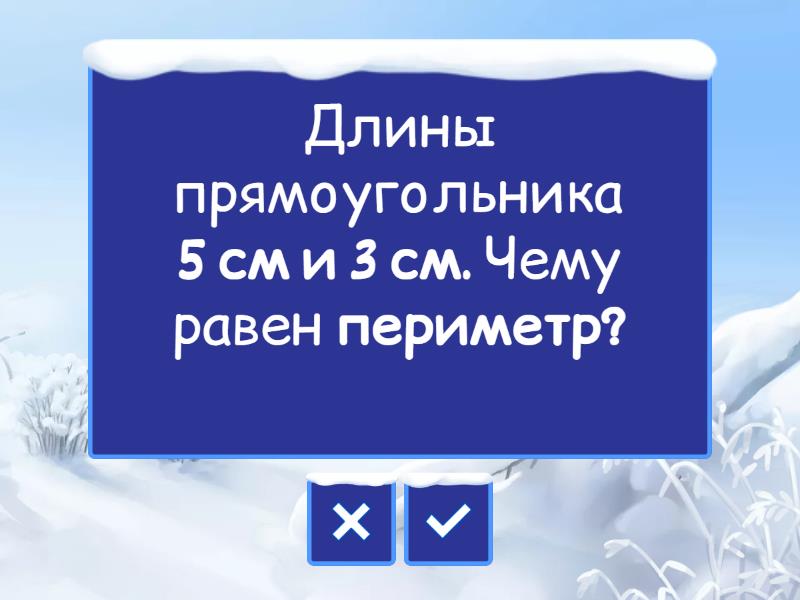 Длина прямоугольника 6 см, а ширина на 2 см короче. Чему равен периметр?, Длины прямоугольника 5 см и 3 см. Чему равен периметр?, Сторона квадрата 2 см. Чему равен периметр?, Длина прямоугольника 6 см, а ширина на 4 см короче. Чему равен периметр?,