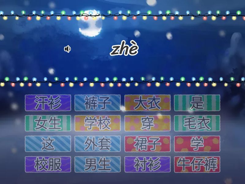 这 - zhè, 是 - shì, 学校 - xué xiào, 校服 - xiào fú, 学 - xué, 男生 - nán shēng, 女生 - nǚ shēng, 穿 - chuān, 衬衫 - chèn shān, 裙子 - qún zǐ, 裤子 - kù zǐ, 毛衣 - máo yī, 大衣 - dà yī, 汗衫 - hàn shān, 牛仔裤 - niú zǎi kù, 外套 - wài tào,