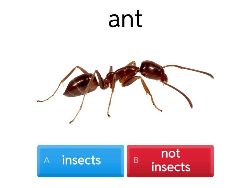 1) ant a) insects b) not insects 2) bee a) insects b) not insects 3) butterfly a) insects b) not insects 4) worm a) insects b) not insects 5) cricket a) insects b) not insects 6) spider a) insects b) not insects 7) snail a) insects b) not insects 8) bug a) insects b) not insects 9) bird a) insects b) not insects 10) frog a) insects b) not insects