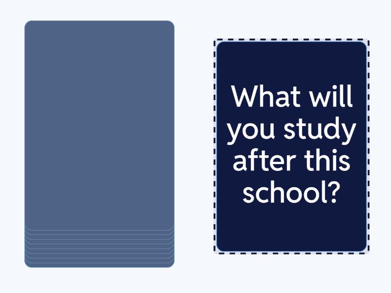How old will you be when you get married?, How old will you be when you have your first child?, Where will you live in 2050?, When will people live on Mars?, What will your be in 20 years?, What will you study after this school?, What will you have to do to speak English?, What will you do this summer?, What kind of transport will we have in 2100?, What will we use our phones for in the future?.