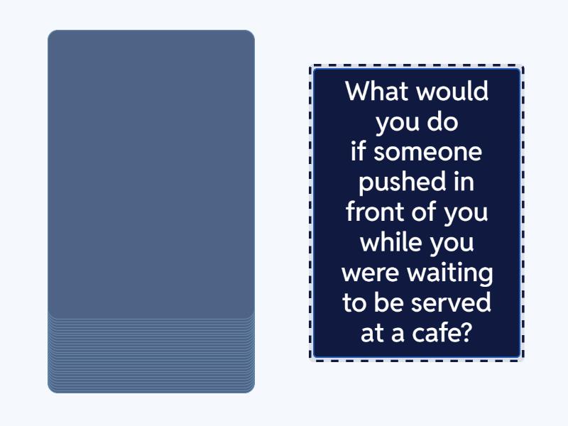 What would you do if you found a bag of cash on the street?, Where would you be right now if you could be anywhere?, Who would you marry if you could marry anyone right now?, What job would you do if all jobs paid the exact same amount of money?, What would you do if your friend came to class/work with no pants on?, How would you react if I told you there were a spider on your shoulder?, How would you die if you could choose?, What would you do if you heard someone saying bad things about your friend?, What would you say if someone asked you out on a date?, What would you do if someone pushed in front of you while you were waiting to be served at a cafe?, What would you do if the TV news wanted to interview you?, What would you do if you were the last person left on Earth?, What would you do if you saw someone crying on the street?, Where would you fly to if you had wings?, What would you do if you thought two of your friends would make a great couple?, What skill would you like to have if you could instantly receive it right now?, Who would you make disappear from history if you could?, Who would you be if you could be anyone?, What would you eat most often if every type of food were healthy?, If you could travel back in time, what time period would you visit and why?, If you could be any age for the rest of your life, what age would you choose and why?, If you could switch lives with one person for a day, who would it be and why?, If you could meet any person in history, who would it be and why?, If you could live in any country in the world, where would you choose?, If you could have any job in the world, what would it be?, If you could have any animal as a pet what would it be?, If you could speak any language fluently, which one would you choose?, If you could change one thing about the world, what would it be?, If you could only eat one type of food for the rest of your life, what would it be?.
