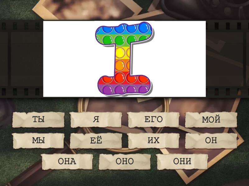 Я, ТЫ - YOU, МЫ - we, ОН - HE, ОНА - SHE, ОНО - IT, ОНИ - THEY, МОЙ - MY, ЕГО - HIS, ЕЁ - HER, ИХ - THEIR,