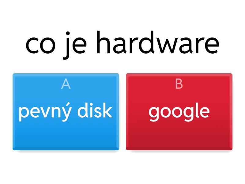 1) co je hardware a) pevný disk b) google 2) k čemu nebo kde se používá WWW a) před odkaz na internetovou stránku b) označuje celou internetovou sít  c) nikde a nikdy 3) jak zkopírovat text na pc a) ctrl v b) alt f4 c) ctrl c d) f5 4) co je to operační systém a) počítačový program, který umožňuje správu počítače, řízení hardwaru a běh jiných programů. b) systém operací ve zdravotnictví c) plán u kriminalistiky d) systém čistící uložistě počítače 5) co je sowtware a) b) c) d) 6) proč je informatika dobrá a) studenti se učí informačním postupům a pojmům, zkoumají řešitelnost problémů, hledají a objevují optimální řešení, zpracovávají data a interpretují je b) k ničemu c) práce s počítačem 7) co má něco společného s informatikou a) b) c) 8) kolik je 1GB a) 10MB b) 100MB c) 1000MB d) 10000000MB 9) jaký je správný kod pro-žehlete při střední teplotě a) b) c) 10) jaký emoji je používán jako naštvaný a) b) c) d) 11) jaká je počítačová ikona wifi a) b) c) 12) část stolního počítače, ve které jsou komponenty zajišťující jeho funkci a) počítačová skřín b) klávesnice c) myš d) pevný disk 13) nejbezpečnější hesla jsou a) ty co mají jen 4 číslice a nic víc b) naše jméno a rok narození c) písmena plus číslice d) velká a malá písmena, speciální znaky a číslice 14) své heslo řeknu a) mamce b) nikomu c) všem d) nejlepší kamarádce 15) co je větší a) B b) kB 16) co NENÍ webový prohlížeč a) tiktok b) Opera c) Safari d) Maxthon 17) jak poznám že je stránka ověřená a) nepoznám b) musím si to vyhledat c) symbol zámečku d) nevím 18) komu zašlu fotky ze školního výletu bez zeptání a) spolužákum kteří tam byli b) učitelce, nebo doprovodu který tam s námi byl c) dám je na instagram d) všem komu chci 19) co je to microsoft windows a) aplikce na fotky b) operační systém c) vyhledávač d) umělá inteligence 20) baví vás informatika a) NE b) JO c) NĚKDY