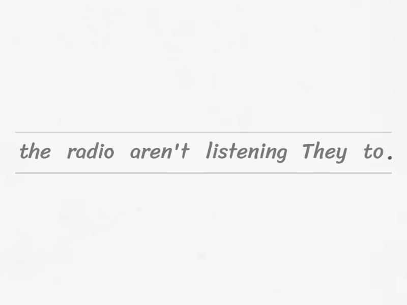 They aren't listening to the radio., They are watching TV., He isn't having a shower., He is getting dressed., They aren't swimming., They are running., She isn't writing a letter., She is reading a book.,