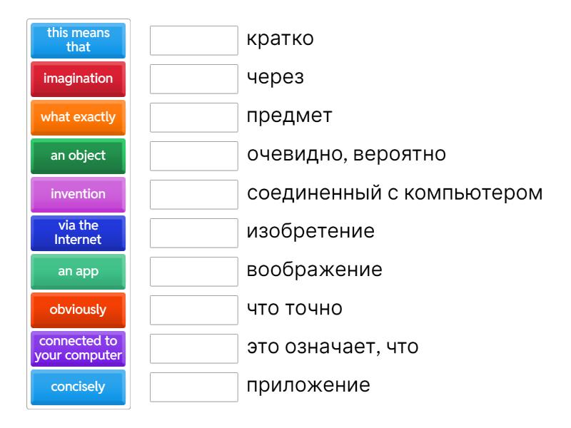 an app - приложение, obviously - очевидно, вероятно, what exactly - что точно, this means that - это означает, что, concisely - кратко, an object - предмет, connected to your computer - сoединенный с компьютером, imagination - воображение, invention - изобретение, via the Internet - через,