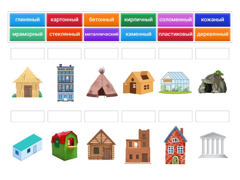 пластиковый, деревянный, металлический, кирпичный, картонный, кожаный, бетонный, стеклянный, каменный, мраморный, соломенный, глиняный,