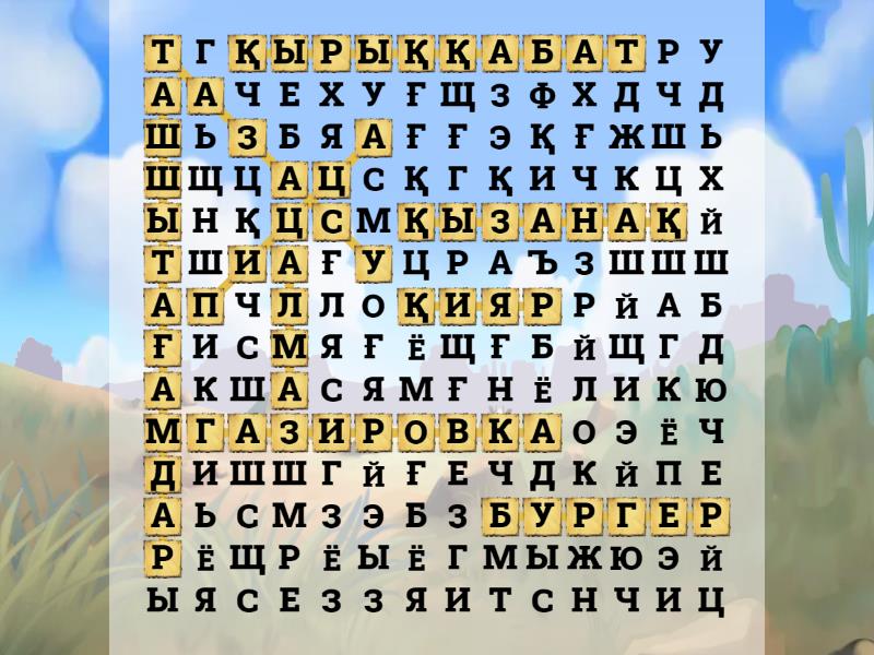 Қызанақ, Пицца, Газировка, Алма, Қырыққабат, Бургер, Таза су, Қияр, Ашшы тағамдар,