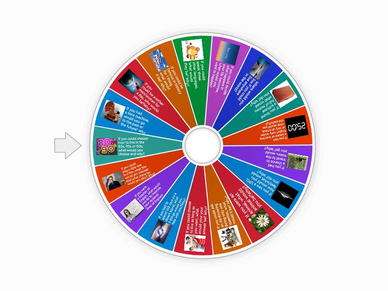 1) If you had a time machine, would you go to the past or the future? Why 2) If you could be another man/woman for a day, who would you be?Why? 3) If you could be famous in history for 1 thing, what would it be? Why? 4) If you could speak three other languages. What would they be? Why? 5) If you could decide what happens in your life tomorrow, what would you want to happen? 6) Where would you live if you could live anywhere in the world? 7) If you found a suitcase full of money, what would you do? Why? 8) If you had a choice of learning English only online or only at school, what would you choose?Why? 9) If you had a chance to travel to the moon, would you go? Why? 10) If you saw a UFO, how would you feel/what would you do? Why? 11) If you were an animal, what animal would you be?Why? 12) If you could ask an All-Knowing Being only one question, what would it be? Why? 13) If you could choose to live as long as you want, what would your your answer be? Why? 14) If you had to spend 100 days on a desert island, what 5 things would you take with you?Why? 15) If you were a teacher of English, what would you do to improve your students' level of English? 16) If you could play a little role in a film, what film would you choose? And what character would you play? Why? 17) If you could choose now to live in the 80s, 90s or 00s, what would you choose and why?