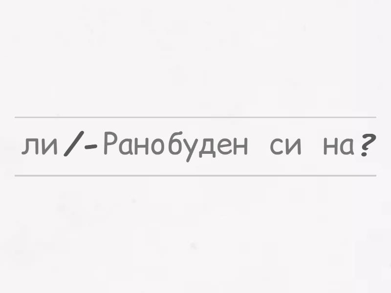 Ранобуден/-на ли си?, Сутрин обичаш да говориш или да мълчиш?, Имаш ли сутрешни ритуали?, С какво се занимаваш?, Какво обичаш да правиш през свободното си време?, Какви полезни навици имаш? А вредни?,