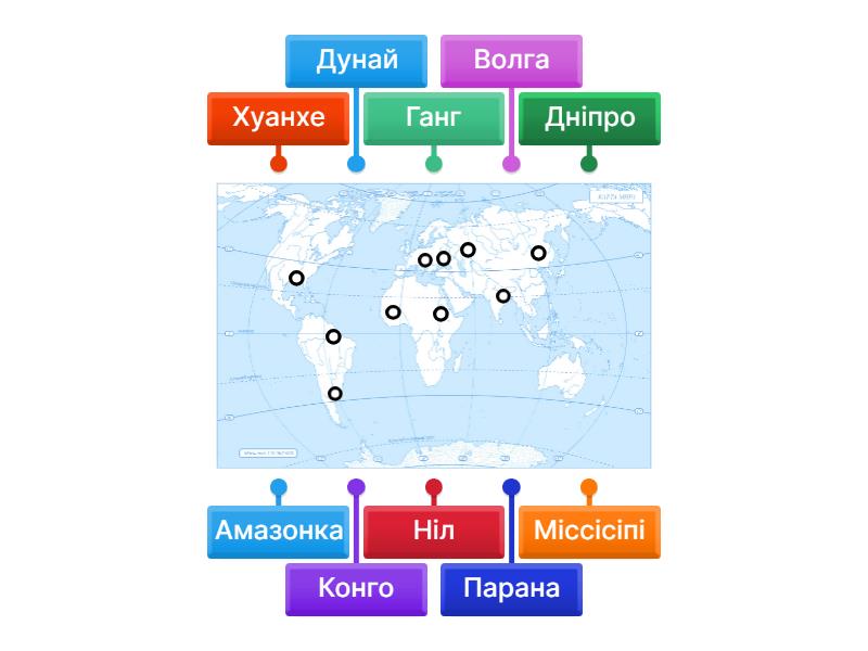 Амазонка, Ніл, Міссісіпі, Дніпро, Волга, Парана, Ганг, Хуанхе, Конго, Дунай.