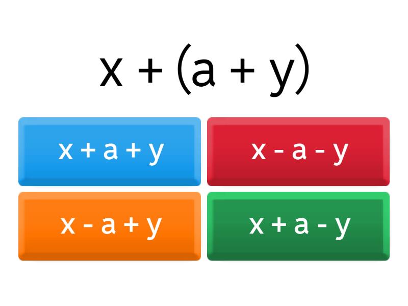 1) х + (a + y) a) x + a + y b) x - a - y c) x - a + y d) x + a - y 2) p - (m + n) a) p - m + n b) p - m - n c) p + m - n d) p + m + n 3) a - (-b + c) a) a + b + c b) a - b + c c) a + b - c d) a - b - c 4) - (a + b) + c a) a + b + c b) a - b + c c) -a - b - c d) -a - b + c 5) a + (-m - n) a) a + m + n b) a - m - n c) a + m - n d) a - m + n 6) a - (t + p) a) a - t + p b) a + t - p c) -a - t - p d) a - t - p 7) (a + b + c) a) a + b + c b) -a + b - c c) a - b - c d) a - b+ c 8) - (d + b - t) a) -d + b+ t b) -d - b - t c) -d - b + t d) d - b + t 9) -(a + b) + (c - d) a) -a + b - c + d b) -a - b + c - d c) a + b + c - d d) a - b - c - d 10) (m+3)-(k-5) a) m+3-k-5 b) -m-3+k+5 c) m+3 - k+5 d) m-3 - k + 5 11) 4 - (a + 2) a) 4 - a + 2 b) -4 - a - 2 c) 4 +a + 2 d) 4 - a-2