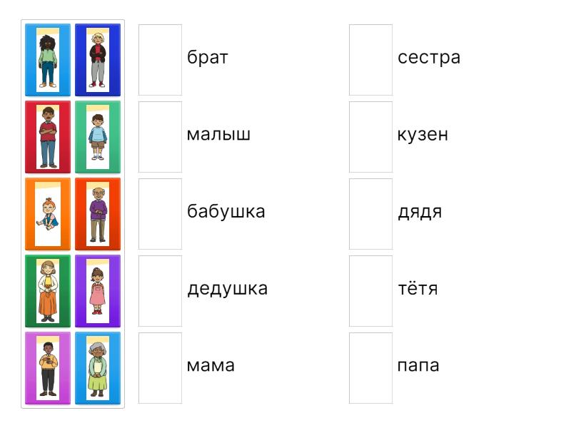 мама, папа, дедушка, бабушка, дядя, тётя, брат, сестра, малыш, кузен,