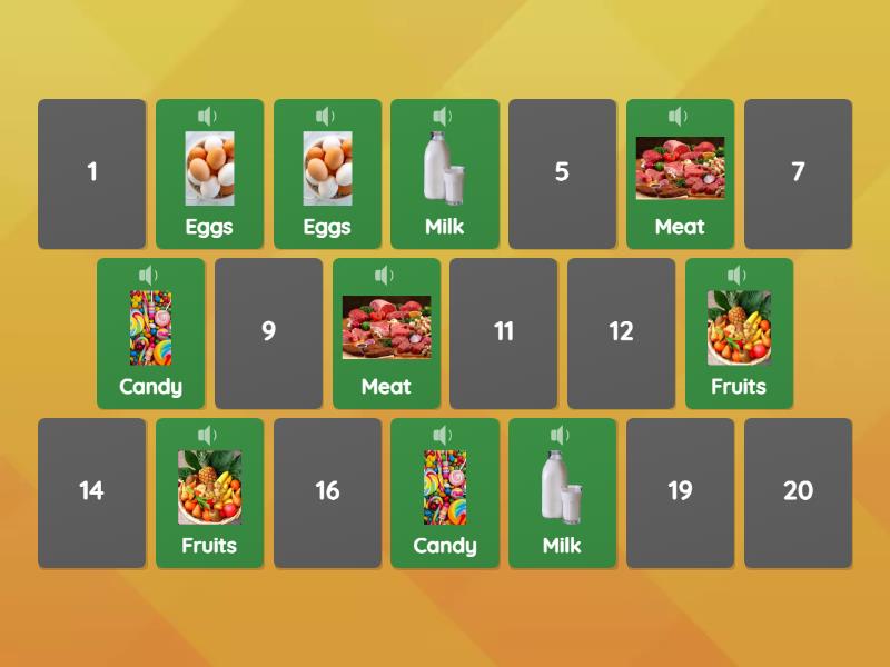Candy - Candy, Meat - Meat, Eggs - Eggs, Fruits - Fruits, Milk - Milk, Veggies - Veggies, Water - Water, Chips  - Chips , healty food - healty food, junk food - junk food,
