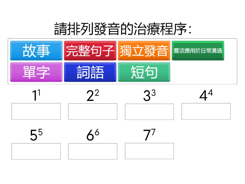 獨立發音, 單字, 詞語, 短句, 完整句子, 故事, 靈活應用於日常溝通.