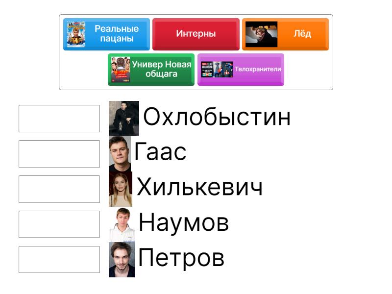 Универ Новая общага - Хилькевич, Лёд - Петров, Реальные пацаны - Наумов, Телохранители - Гаас, Интерны - Охлобыстин,