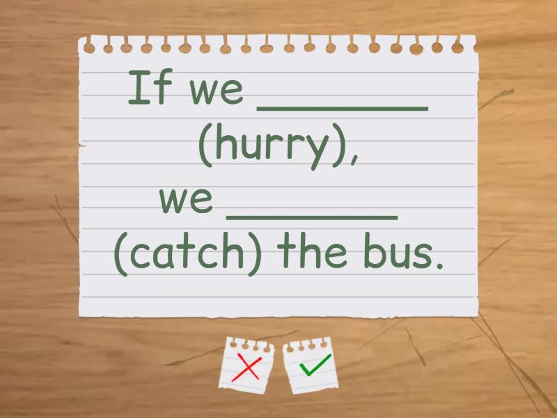 If it ____ (rain), we ____ (stay) at home., If she ____ (study) hard, she ____ (pass) the exam., If they ____ (not hurry), they ____ (be) late., If you ____ (eat) too much, you ____ (feel) sick, If we ____ (go) to the beach, we ____ (swim) in the sea., If they ______ (be) late, we ______ (start) without them., If we ______ (hurry), we ______ (catch) the bus., If you ____ (eat) too much candy, you ____ (get) a stomachache., If we ____ (not leave) now, we ____ (be) late., If you ____ (win) the lottery, what ____ you _____ (do)?,